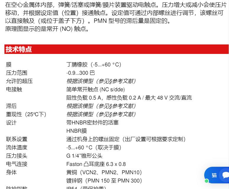 CITEC OEM壓力開關(guān)PMN系列