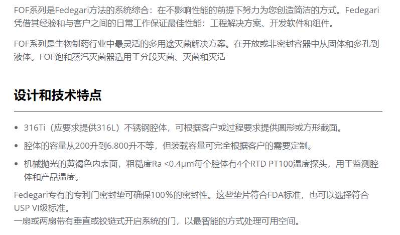FEDEGARI 飽和蒸汽滅菌柜FOF系列