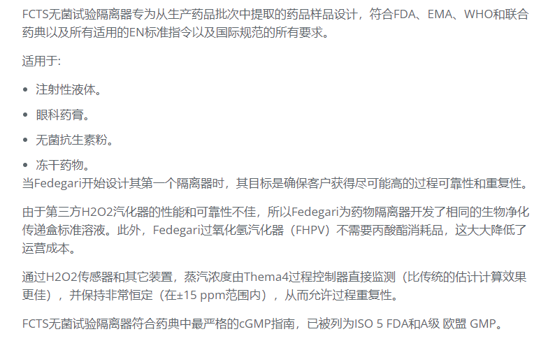 FEDEGARI 滅菌測試隔離器FCTS系列