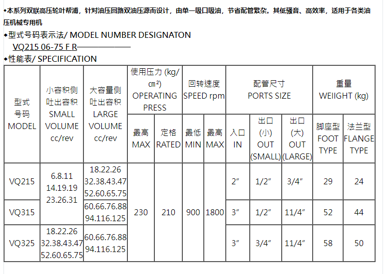 FURNAN 高壓雙聯泵VQ215系列