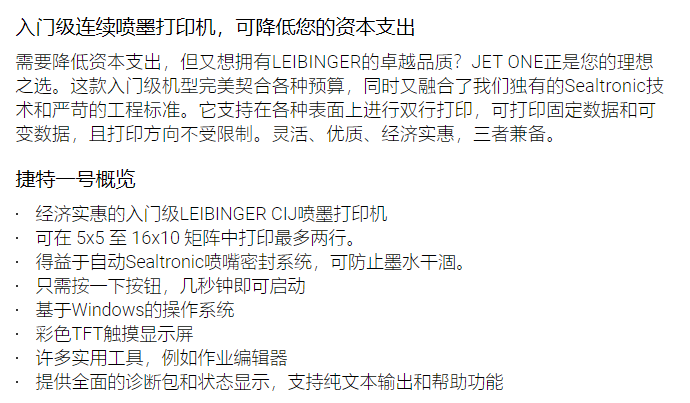 LEIBINGER 連續噴墨打印機JET ONE系列