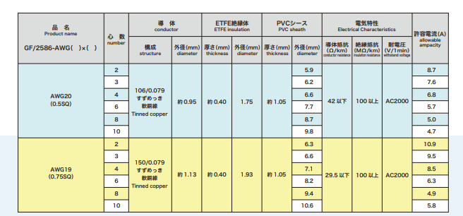 KANEKO CORD 柔性電纜G-FLON/UL2586