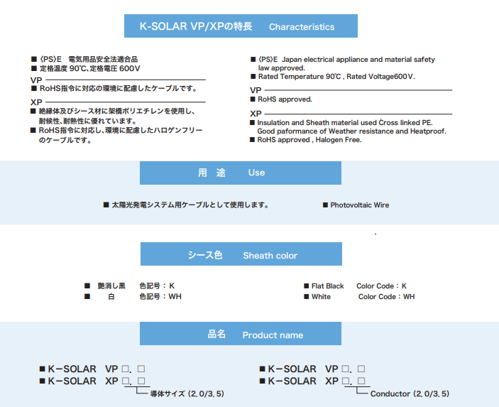 KANEKO CORD 太陽能電纜K-SOLAR VP/XP