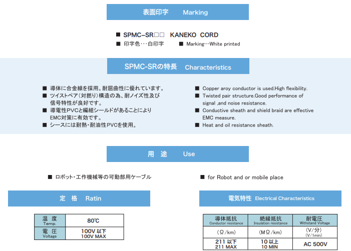 KANEKO CORD 屏蔽電纜SPMC-SR系列