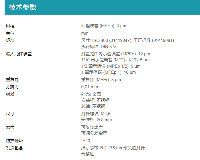 TESA 機械指示表標準型, 分辨率 0,01 mm系列