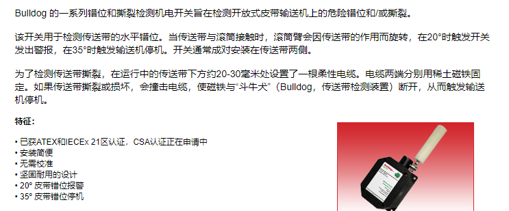 4B Components 輸送帶錯位及撕裂檢測開關系列