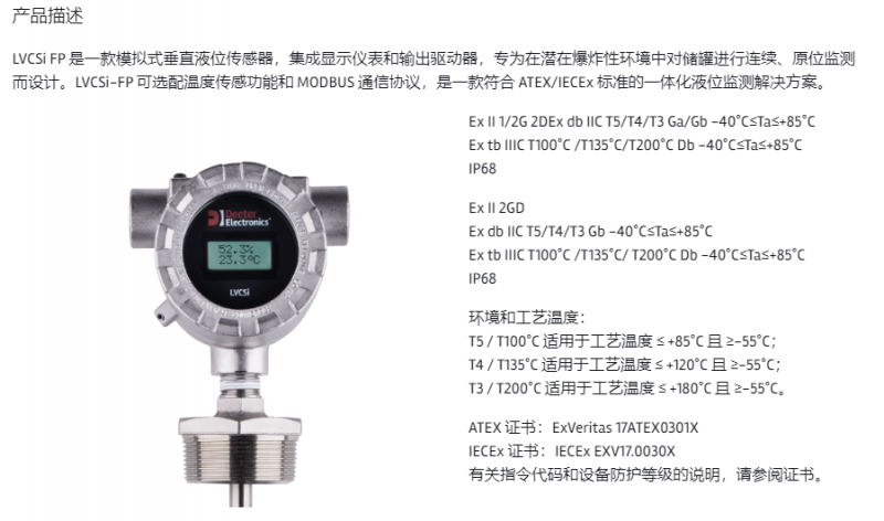 Deeter Electronics 連續垂直液位傳感器系列