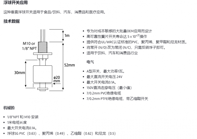 Deeter Electronics 垂直浮球開關(guān)20系列