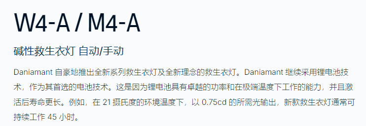 Daniamant 堿性救生衣燈W4-A / M4-A系列