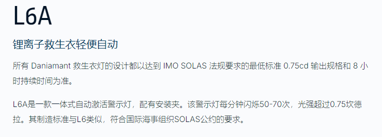 Daniamant 鋰離子救生衣燈L6A系列