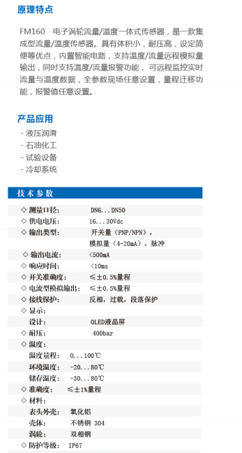 FOREVER 電子渦輪流量溫度傳感器FM160系列
