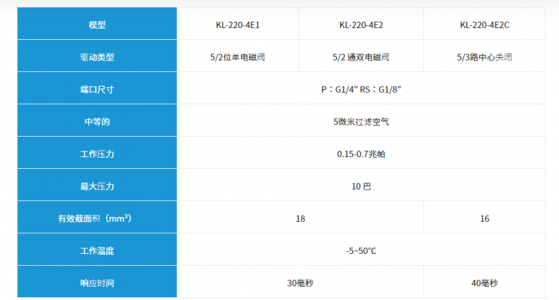 KAO LU 1/4" 5/2、5/3通電磁閥KL220系列