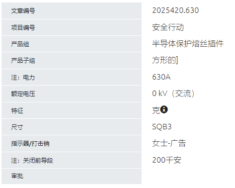 SIBA 半導體保護熔斷器2025420.630系列