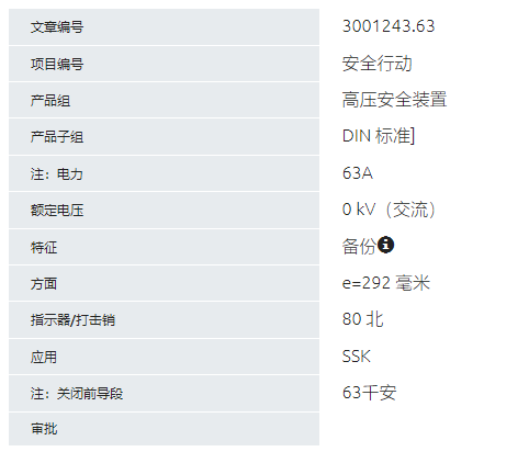 SIBA 高壓熔斷器3001243.63系列
