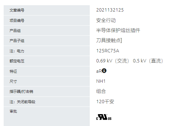 SIBA 半導體保護熔斷器2021132.125系列